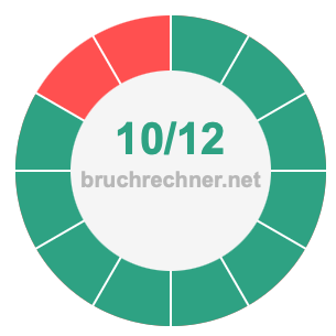 Die beiden nachstehenden Tortendiagramme veranschaulichen, was es bedeutet, 10/12 zu kürzen. Der Zähler und der Nenner des gekürzten Bruchs sind kleiner als der Zähler und der Nenner des ursprünglichen Bruchs, aber die beiden Brüche haben den gleichen Wert.