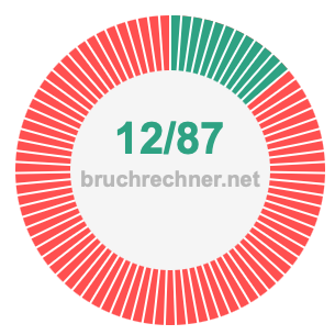 Wie kürzt man 12/87? Hier kürzen wir 12/87 in die kleinste mögliche Form und wandeln den Bruch gegebenenfalls in eine gemischte Zahl um.