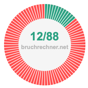 Wie kürzt man 12/88? Hier kürzen wir 12/88 in die kleinste mögliche Form und wandeln den Bruch gegebenenfalls in eine gemischte Zahl um.