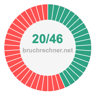 Wie kürzt man 20/46? Hier kürzen wir 20/46 in die kleinste mögliche Form und wandeln den Bruch gegebenenfalls in eine gemischte Zahl um.