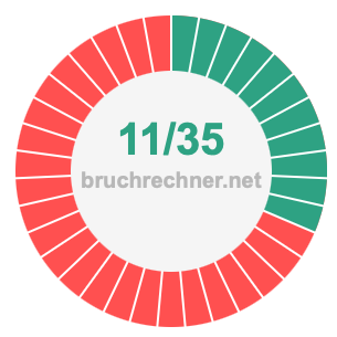 Die beiden nachstehenden Tortendiagramme veranschaulichen, was es bedeutet, 22/70 zu kürzen. Der Zähler und der Nenner des gekürzten Bruchs sind kleiner als der Zähler und der Nenner des ursprünglichen Bruchs, aber die beiden Brüche haben den gleichen Wert.