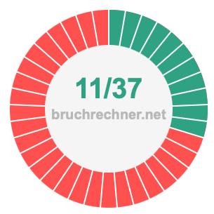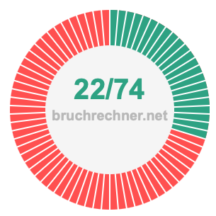 Die beiden nachstehenden Tortendiagramme veranschaulichen, was es bedeutet, 22/74 zu kürzen. Der Zähler und der Nenner des gekürzten Bruchs sind kleiner als der Zähler und der Nenner des ursprünglichen Bruchs, aber die beiden Brüche haben den gleichen Wert.