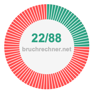 Wie kürzt man 22/88? Hier kürzen wir 22/88 in die kleinste mögliche Form und wandeln den Bruch gegebenenfalls in eine gemischte Zahl um.