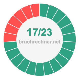 Die beiden nachstehenden Tortendiagramme veranschaulichen, was es bedeutet, 34/46 zu kürzen. Der Zähler und der Nenner des gekürzten Bruchs sind kleiner als der Zähler und der Nenner des ursprünglichen Bruchs, aber die beiden Brüche haben den gleichen Wert.