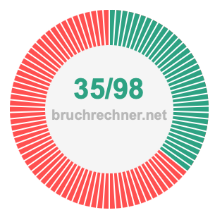 Wie kürzt man 35/98? Hier kürzen wir 35/98 in die kleinste mögliche Form und wandeln den Bruch gegebenenfalls in eine gemischte Zahl um.