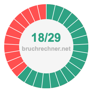 Die beiden nachstehenden Tortendiagramme veranschaulichen, was es bedeutet, 36/58 zu kürzen. Der Zähler und der Nenner des gekürzten Bruchs sind kleiner als der Zähler und der Nenner des ursprünglichen Bruchs, aber die beiden Brüche haben den gleichen Wert.