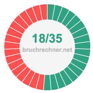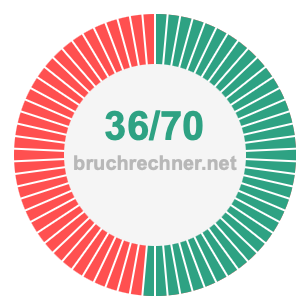 Die beiden nachstehenden Tortendiagramme veranschaulichen, was es bedeutet, 36/70 zu kürzen. Der Zähler und der Nenner des gekürzten Bruchs sind kleiner als der Zähler und der Nenner des ursprünglichen Bruchs, aber die beiden Brüche haben den gleichen Wert.
