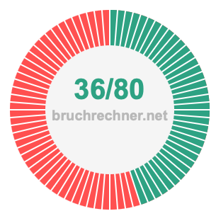 Wie kürzt man 36/80? Hier kürzen wir 36/80 in die kleinste mögliche Form und wandeln den Bruch gegebenenfalls in eine gemischte Zahl um.