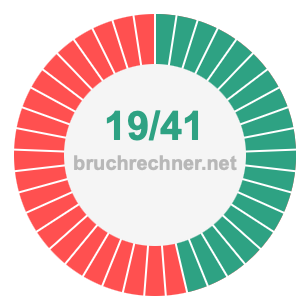 Die beiden nachstehenden Tortendiagramme veranschaulichen, was es bedeutet, 38/82 zu kürzen. Der Zähler und der Nenner des gekürzten Bruchs sind kleiner als der Zähler und der Nenner des ursprünglichen Bruchs, aber die beiden Brüche haben den gleichen Wert.