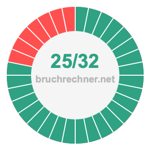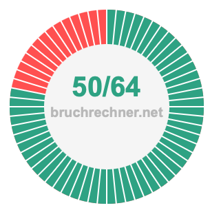 Die beiden nachstehenden Tortendiagramme veranschaulichen, was es bedeutet, 50/64 zu kürzen. Der Zähler und der Nenner des gekürzten Bruchs sind kleiner als der Zähler und der Nenner des ursprünglichen Bruchs, aber die beiden Brüche haben den gleichen Wert.