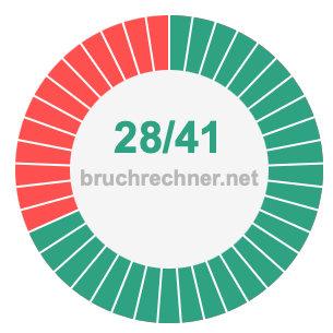 Die beiden nachstehenden Tortendiagramme veranschaulichen, was es bedeutet, 56/82 zu kürzen. Der Zähler und der Nenner des gekürzten Bruchs sind kleiner als der Zähler und der Nenner des ursprünglichen Bruchs, aber die beiden Brüche haben den gleichen Wert.