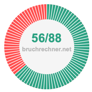 Wie kürzt man 56/88? Hier kürzen wir 56/88 in die kleinste mögliche Form und wandeln den Bruch gegebenenfalls in eine gemischte Zahl um.