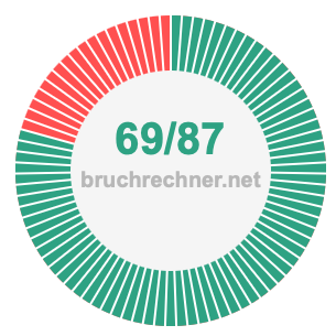 Wie kürzt man 69/87? Hier kürzen wir 69/87 in die kleinste mögliche Form und wandeln den Bruch gegebenenfalls in eine gemischte Zahl um.