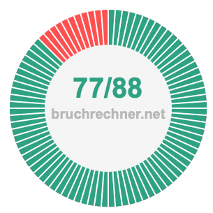 Wie kürzt man 77/88? Hier kürzen wir 77/88 in die kleinste mögliche Form und wandeln den Bruch gegebenenfalls in eine gemischte Zahl um.