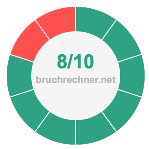 Die beiden nachstehenden Tortendiagramme veranschaulichen, was es bedeutet, 8/10 zu kürzen. Der Zähler und der Nenner des gekürzten Bruchs sind kleiner als der Zähler und der Nenner des ursprünglichen Bruchs, aber die beiden Brüche haben den gleichen Wert.